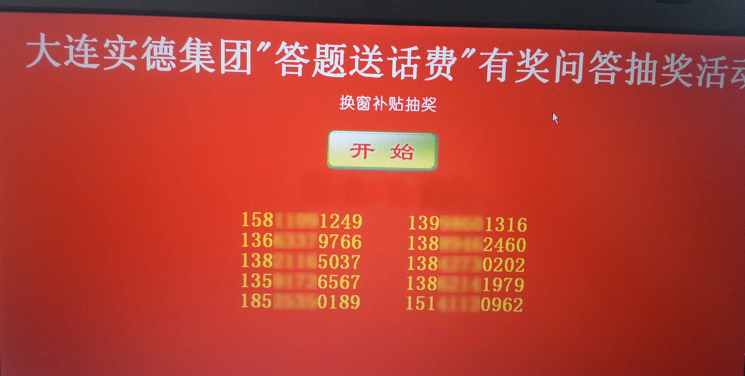 答题送话费活动幸运大奖获奖号码